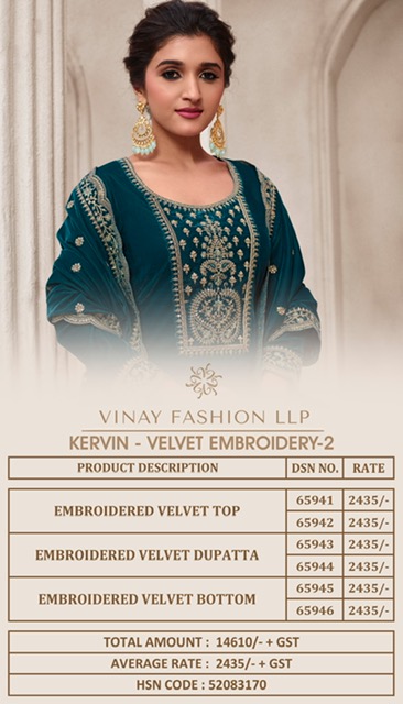 VINAY KERVIN KANVAL DESIGNER VELVET EMBROIDERY SUITS CATALOGUE
